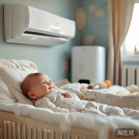 使用空调时,室内湿度也要注意。可以在空调出风口放置加湿器,保持室内湿度在40%到60%之间。这样可以避免宝宝因为干燥而出现皮肤问题或者呼吸道不适。